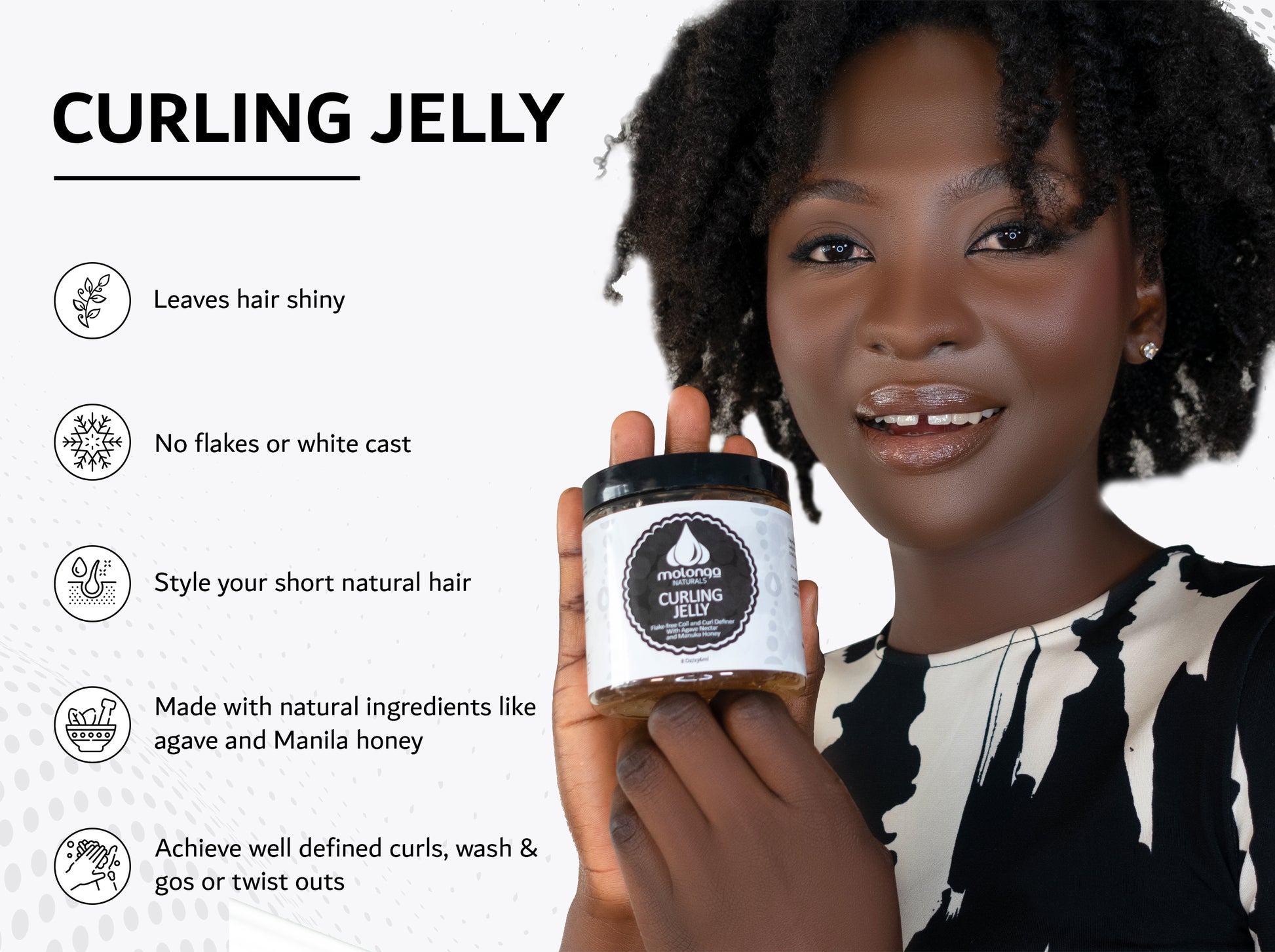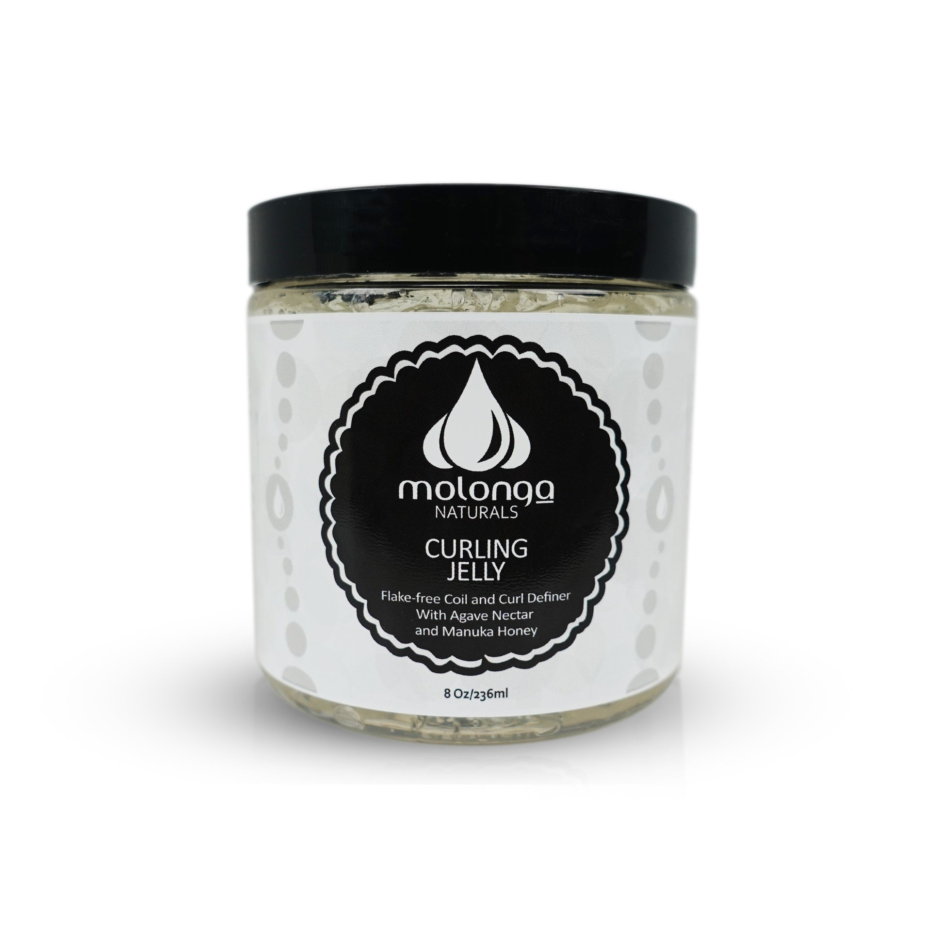 Our no flake curling jelly is formulated with natural ingredients that help accentuate and define all coil and curl types. It’s infused with manuka honey to leave your hair feeling moisturizing and shiny.